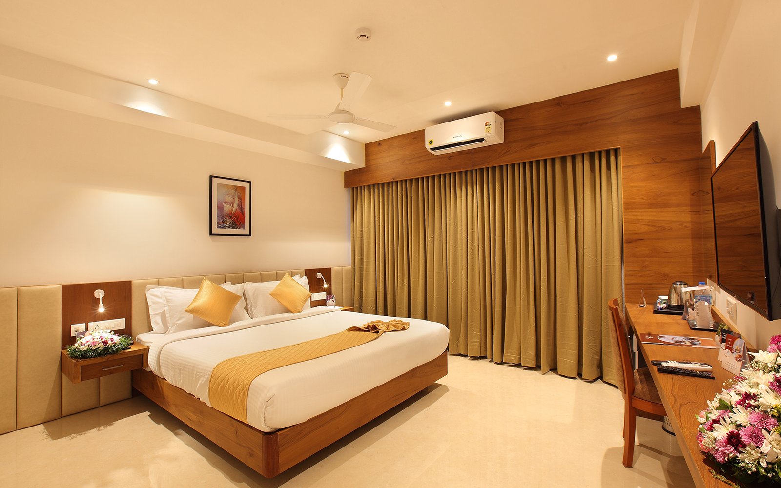 The hotel offers modern accommodation facilities Suite and Deluxe Categories. At the Suite rooms, expect the balance of work with leisure as the room features facilities including separate work station, living area, King Size Bed and En-suite Bathroom. Deluxe Category rooms are also designed spacious, giving utmost care for your comfort. They also have features like attached Bathroom, Television and the In-room service will make your stay worth memorable.
